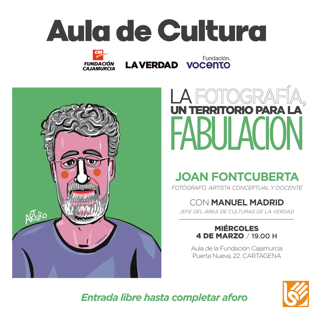 FotoFest Cartagena, la bienal de fotografía del Ayuntamiento de Cartagena, programa el 4 de marzo esta conferencia en la que el artista Joan Fontcuberta conversará con Manuel Madrid, jefe de área de Cultura de La Verdad, el periódico organizador del evento junto a la Fundación Cajamurcia. El evento arrancará a las 19:00 horas en el Palacio Pedreño, sede de la Fundación Cajamurcia y la entrada es libre, hasta completar aforo.