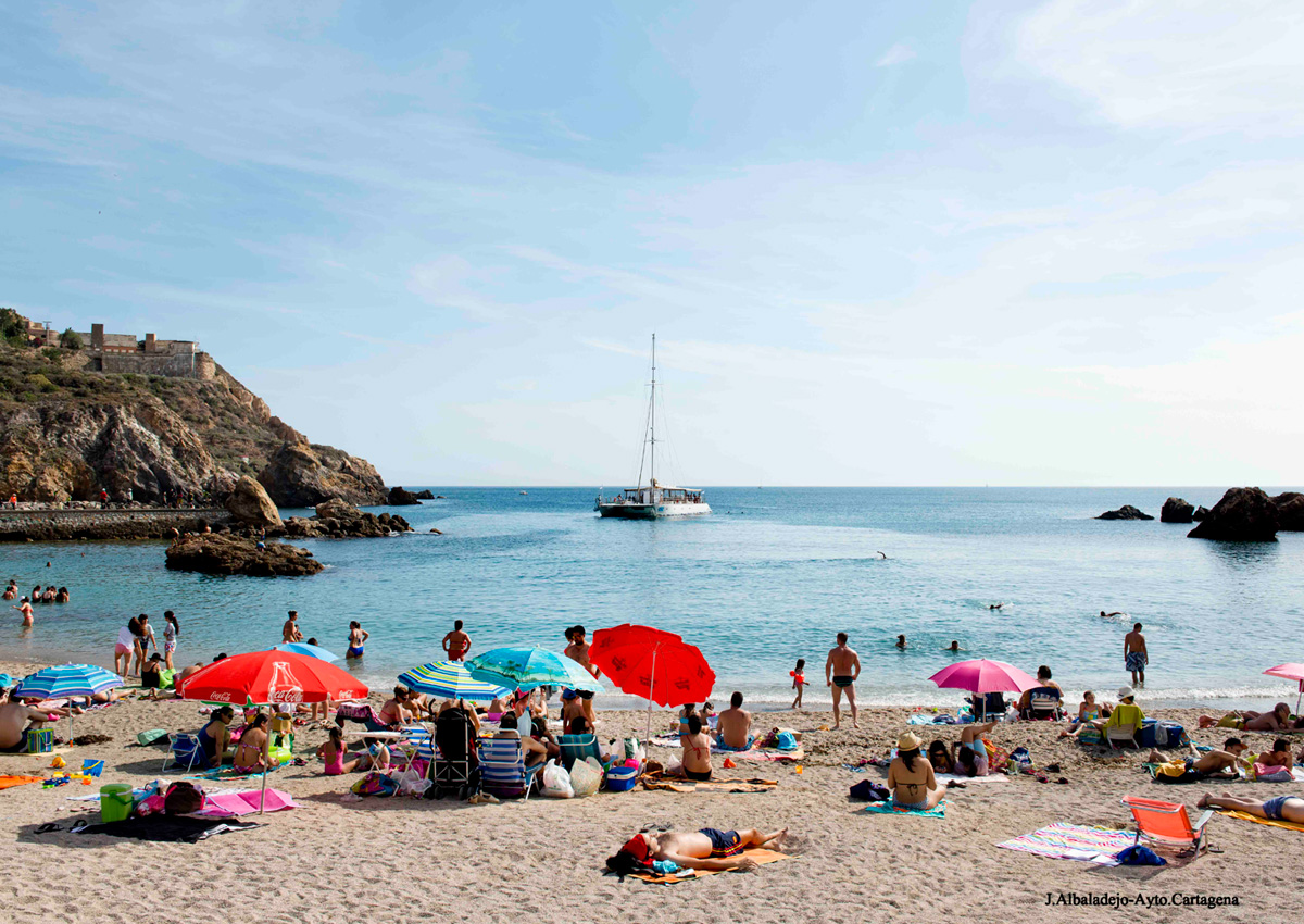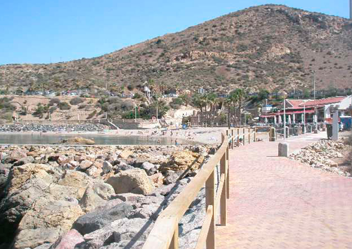 Playa pero que presenta un alto grado de ocupación. Está dotada de buenos equipamientos, y posee un Paseo Marítimo por el que dar agradables paseos que da acceso a la otra cala de menores dimensiones.